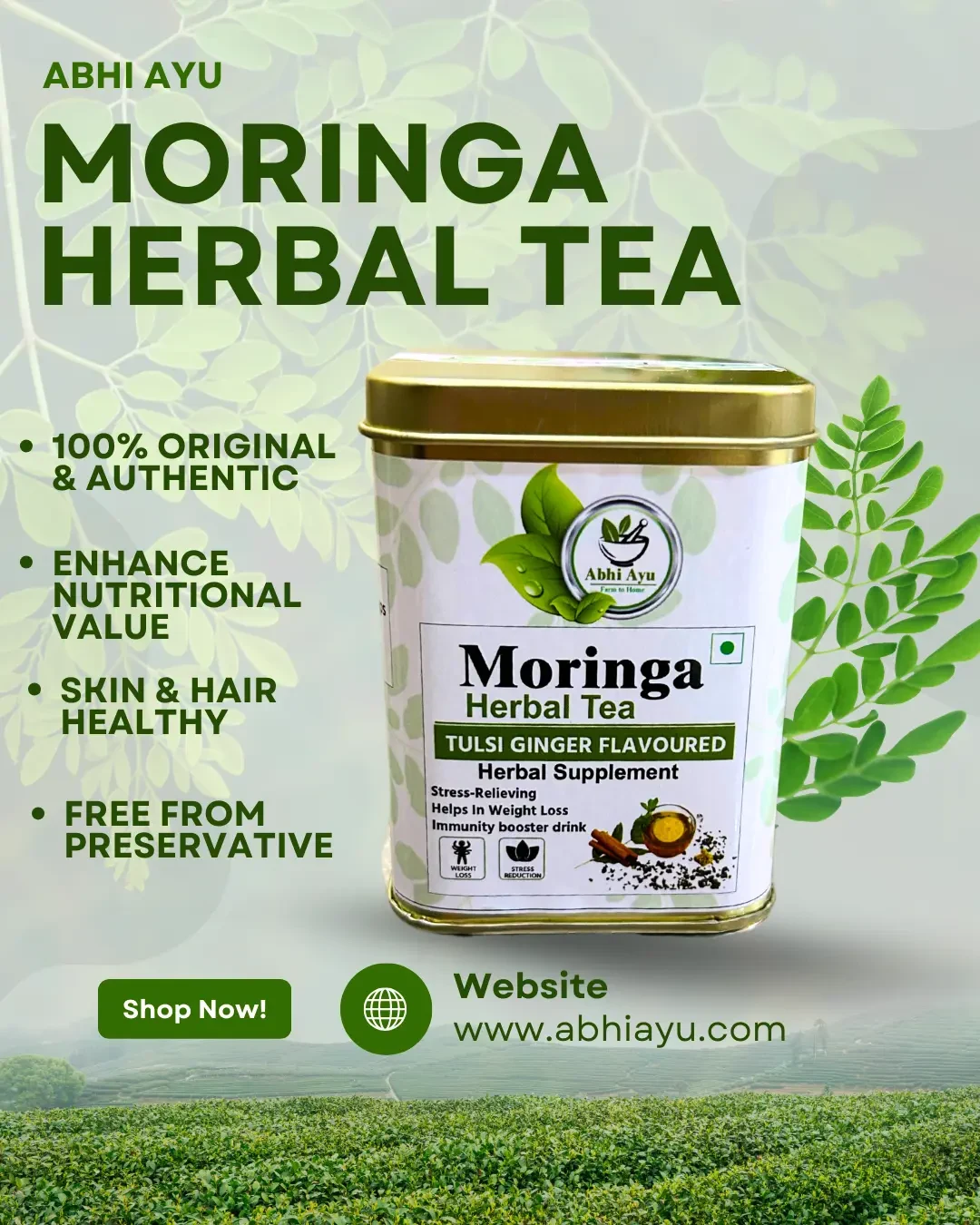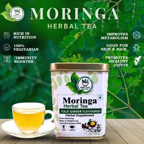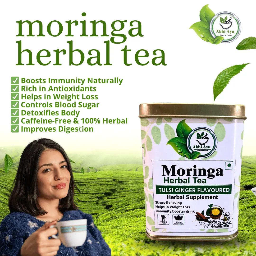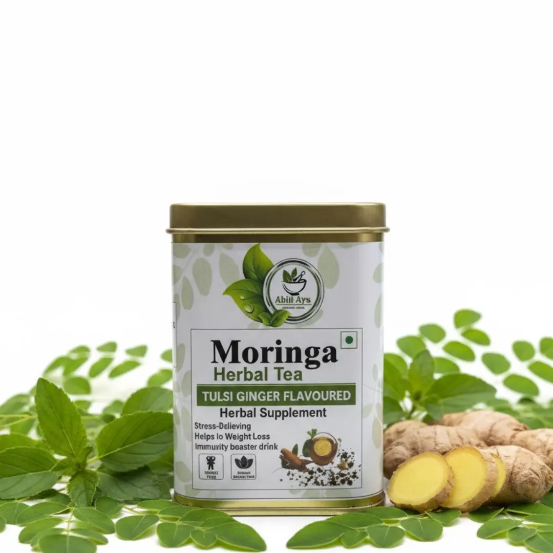 Organic Moringa Herbal Tea – Tulsi Ginger | Fat burner | Weight loss | Caffeine-Free, Stress-Relieving & Digestive Support